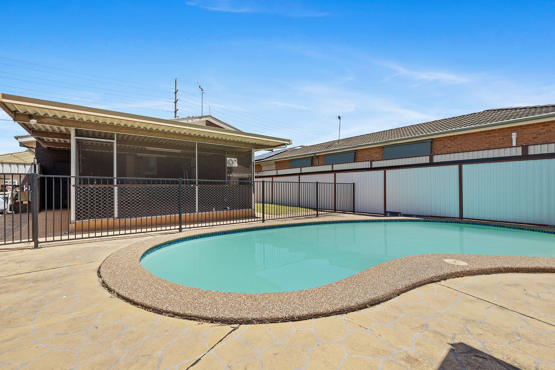 - Sunlit swimming pool