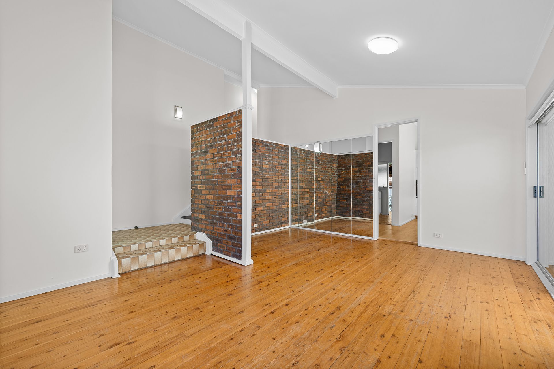 - Flowing lounge and dining zones showcase brick wall feature