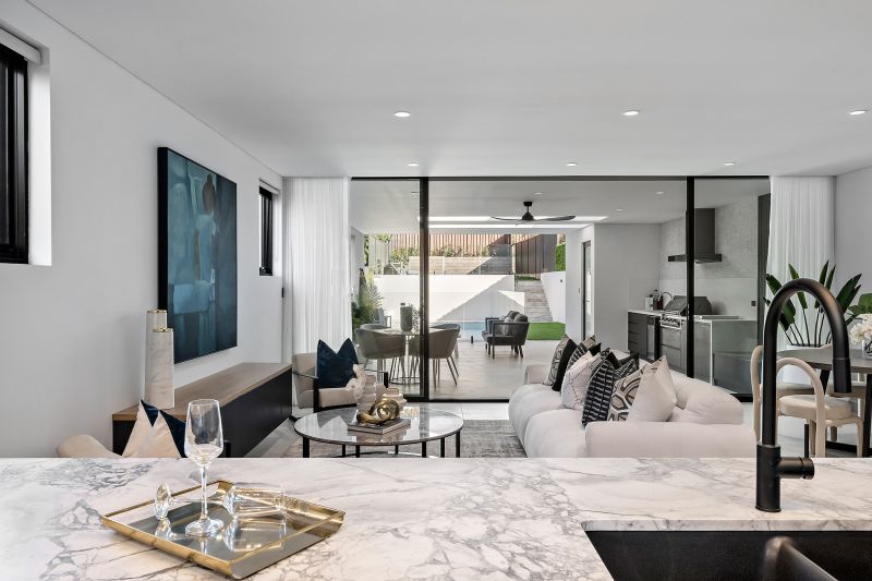 Lifestyle - One of the finest homes in Blakehurst, this new residence has impressive street presence and provides a palatial setting for the largest family to relax, enjoy and entertain on 1050 sqm of land. The grand formal lounge is one of several living spaces which have been architect designed to create a sublime atmosphere. The massive kitchen and family room overlook the stylish lap pool and flow to the covered terrace and wonderful, child friendly yard, all within walking distance to schools and minutes to Hurstville commercial centre