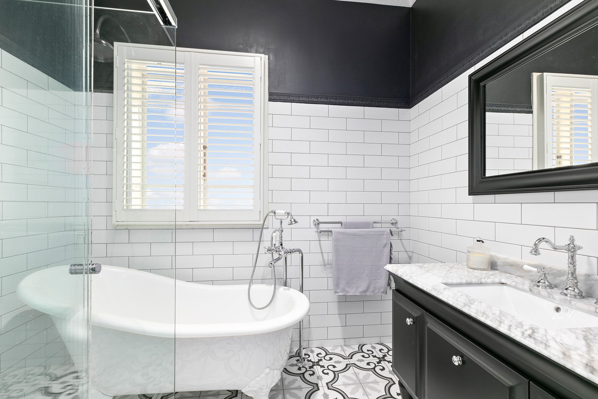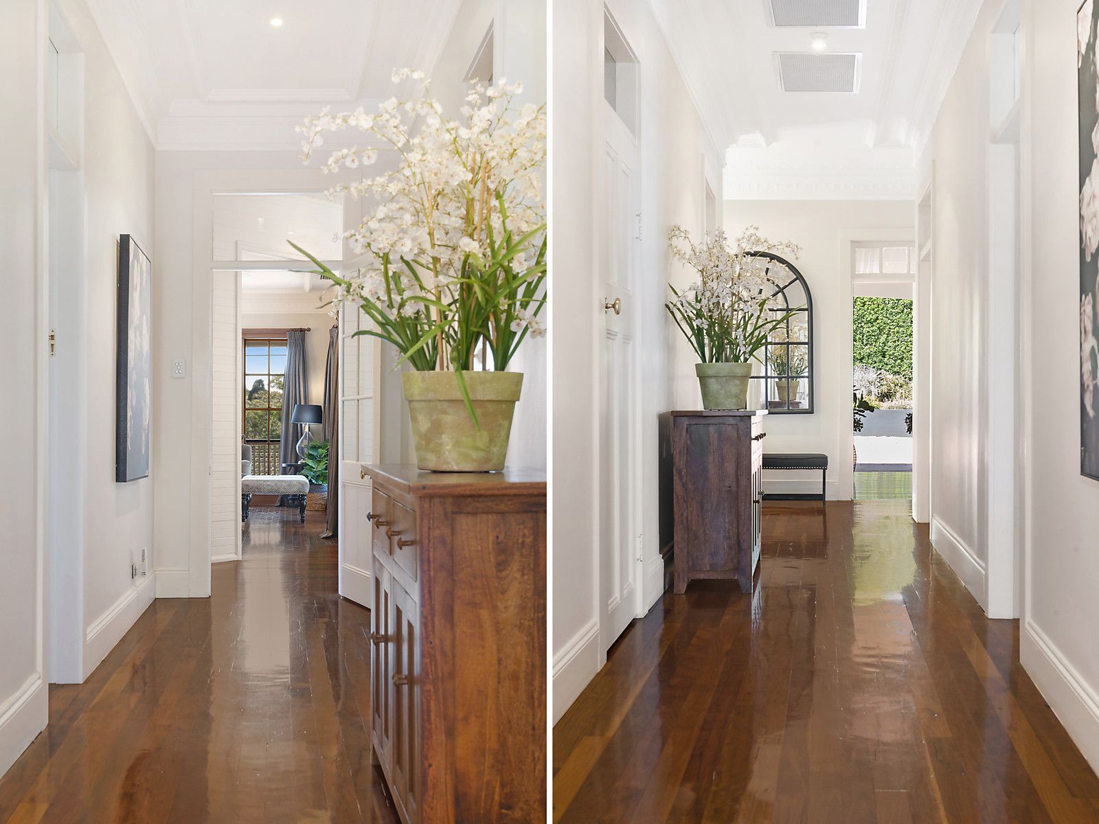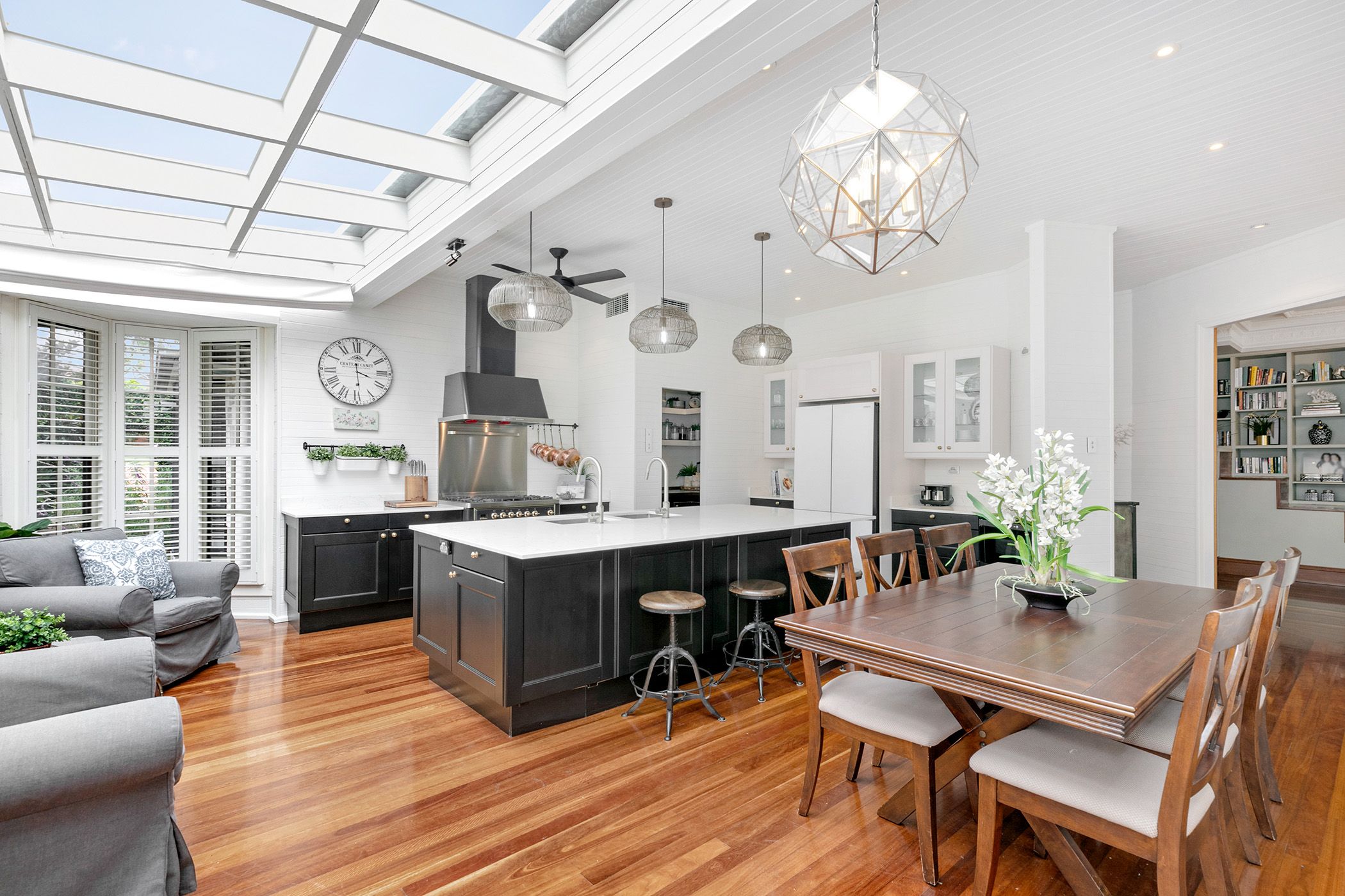 - Elegant spotted gum floors, intricate cornices, and stylish plantation shutters