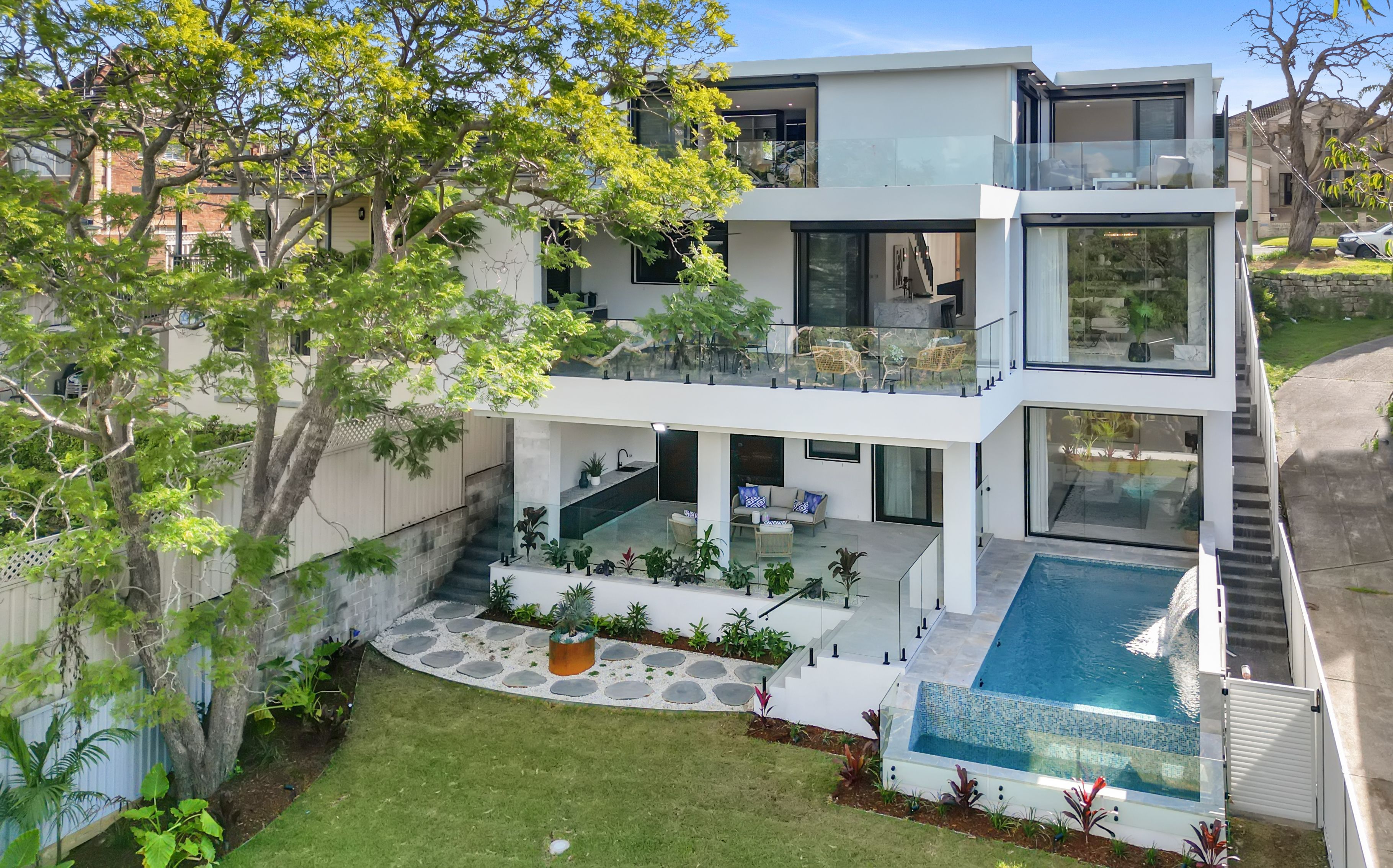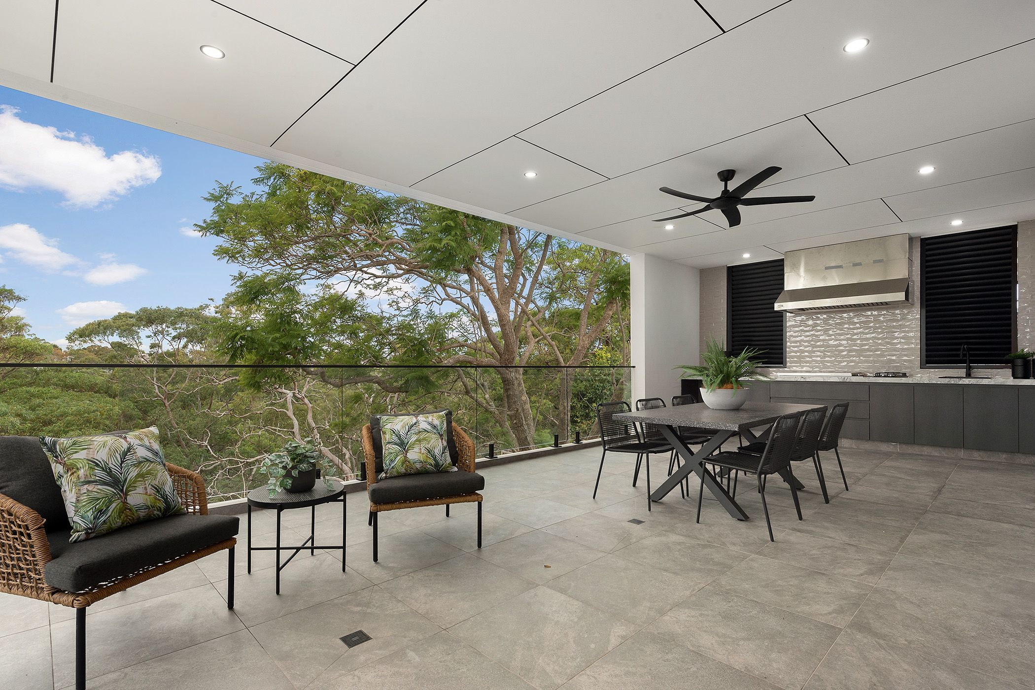 - Sheltered entertainment terrace with built-in BBQ and alfresco kitchen