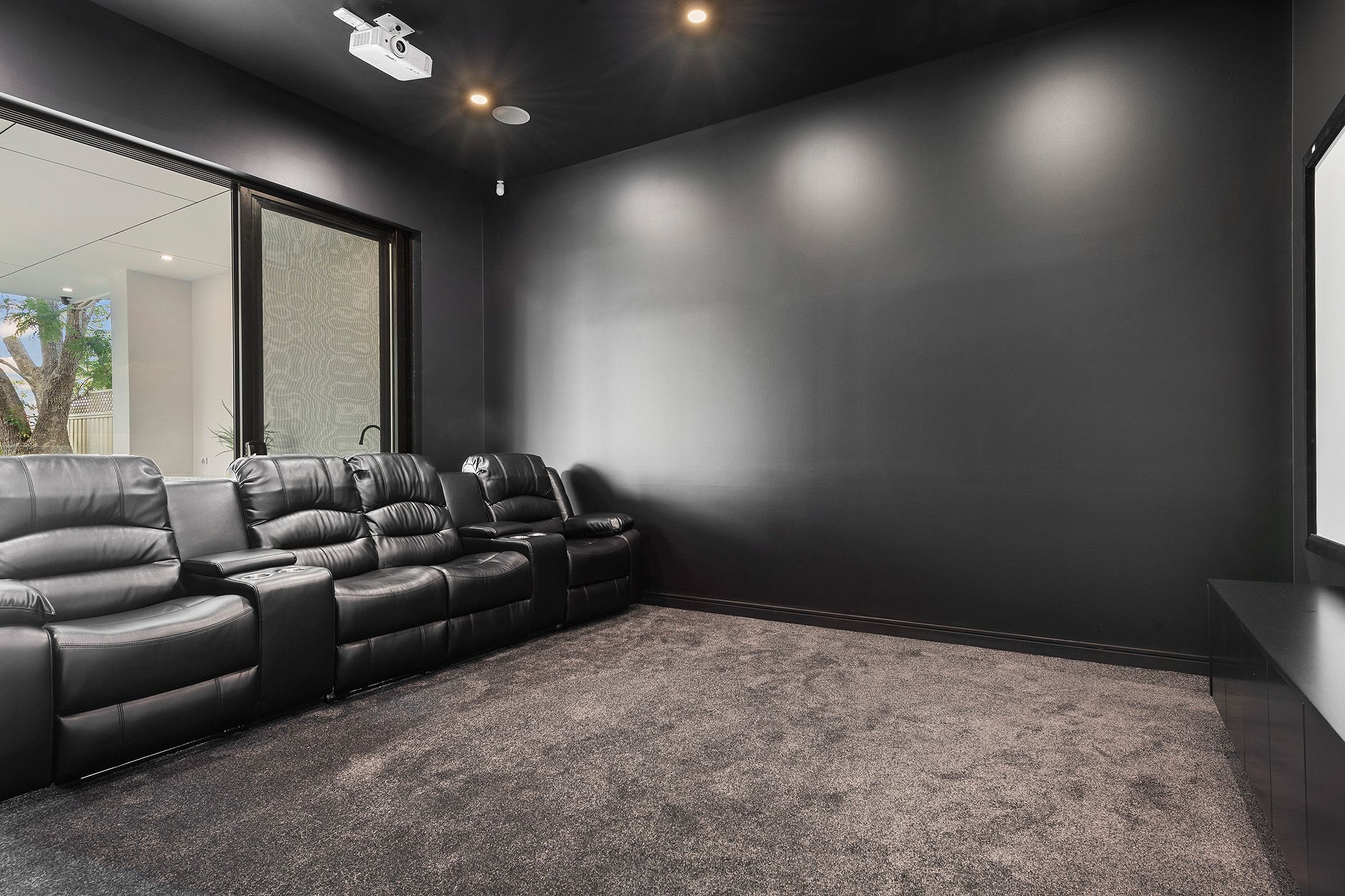 - Lower-level home cinema and games room/living area with bathroom
