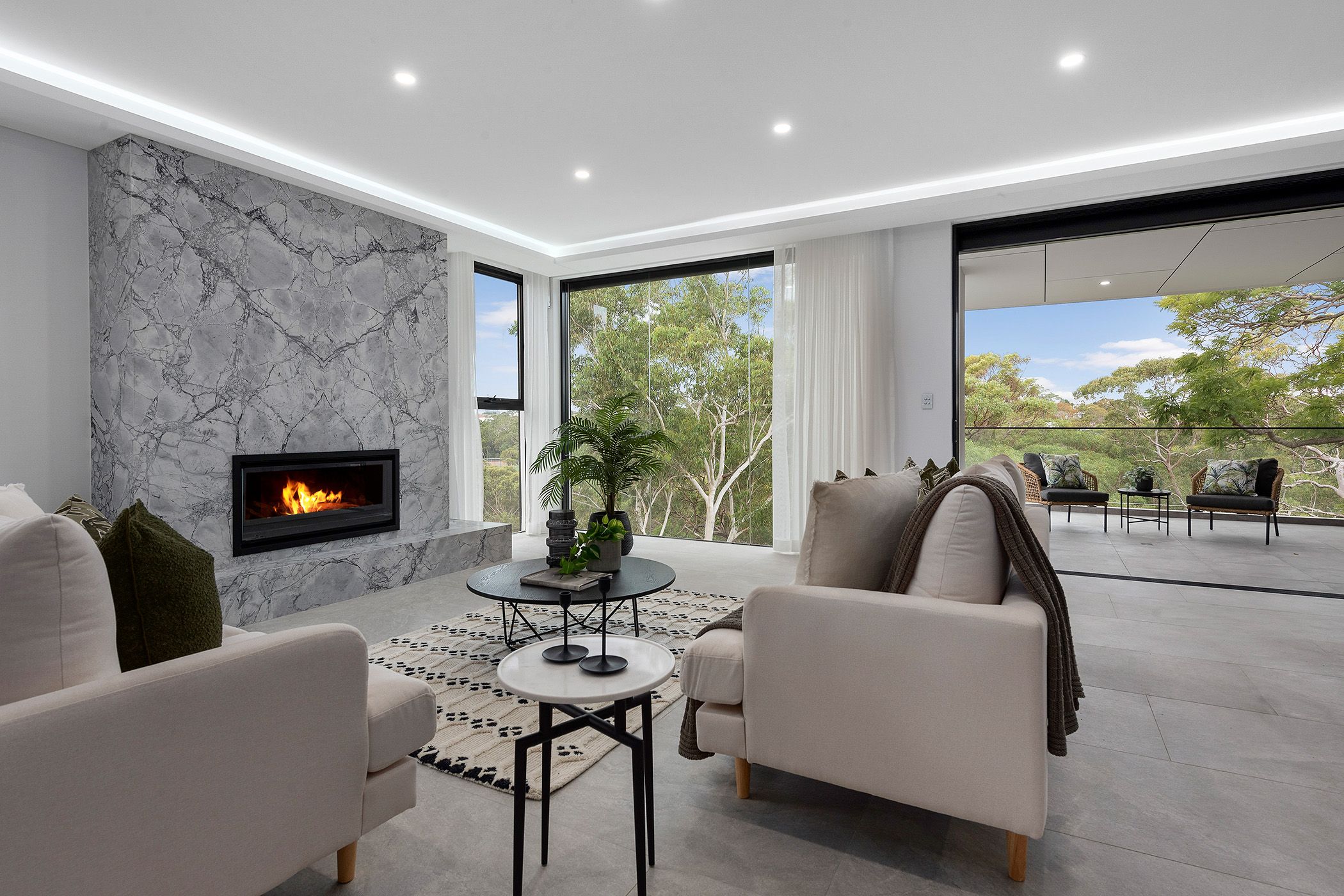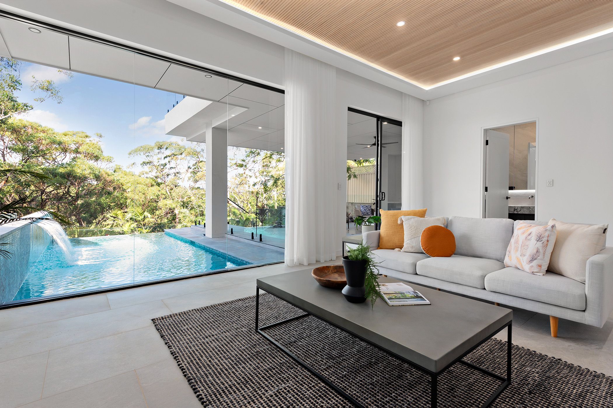 - Supremely spacious open living area that integrates with the outdoors