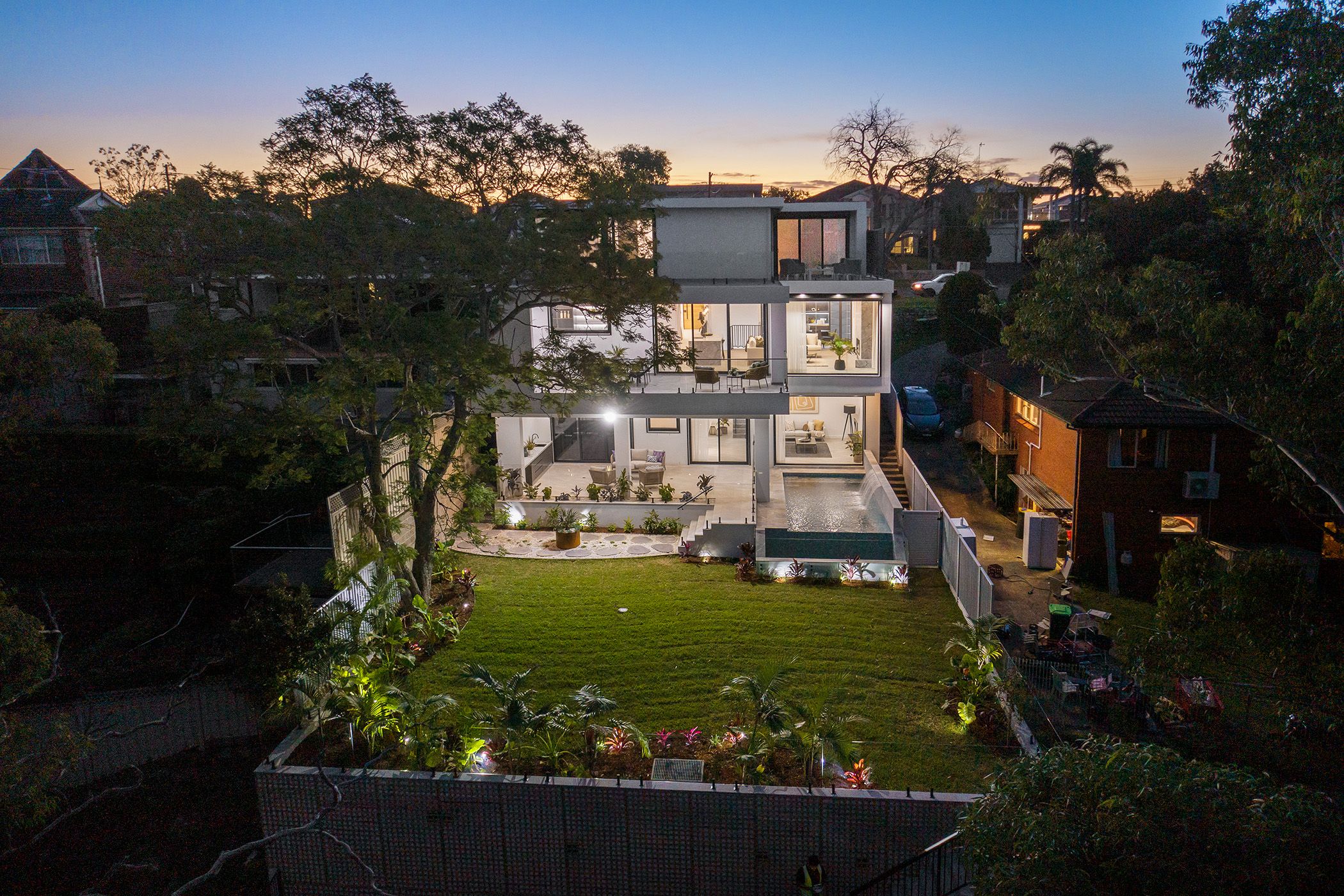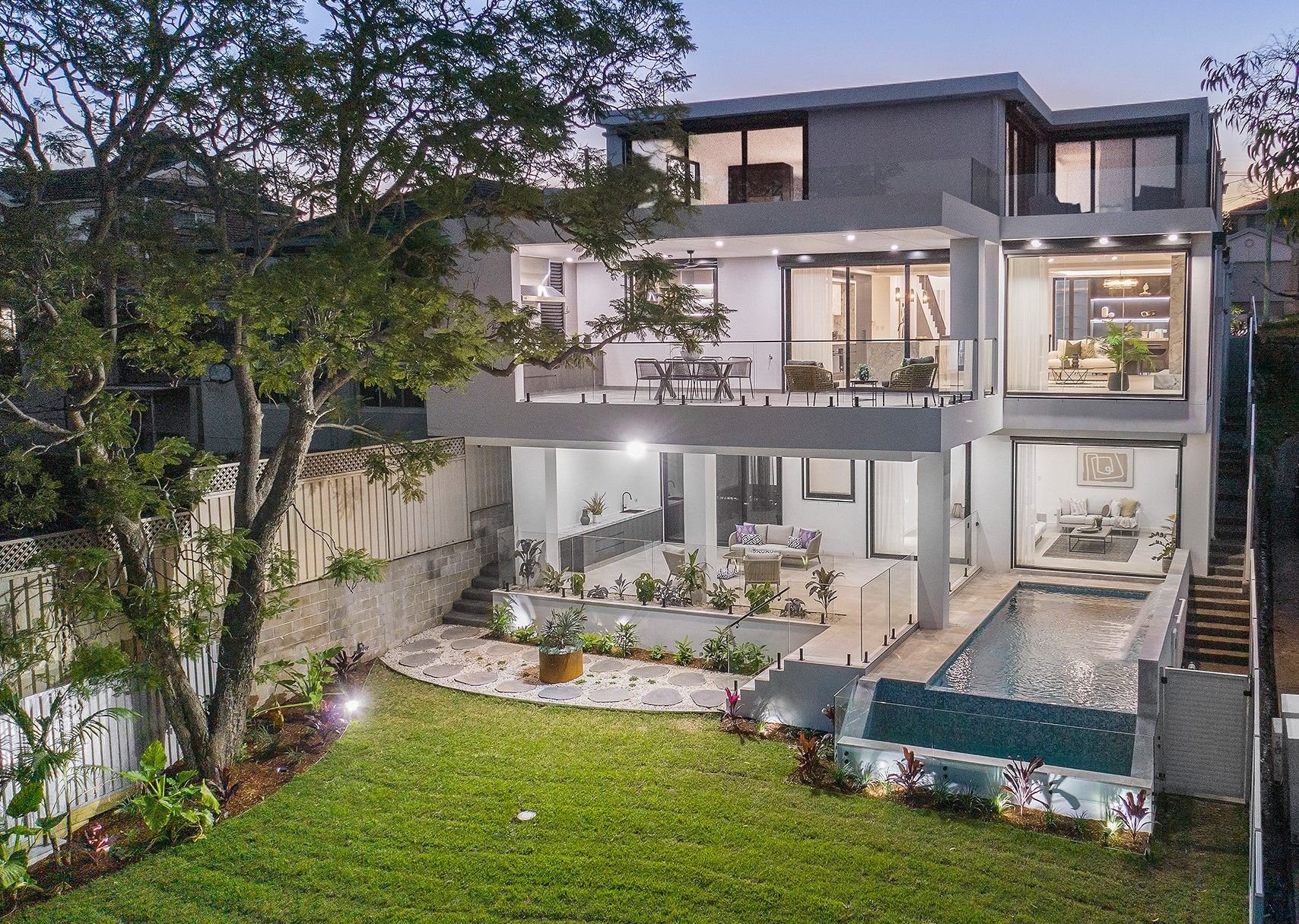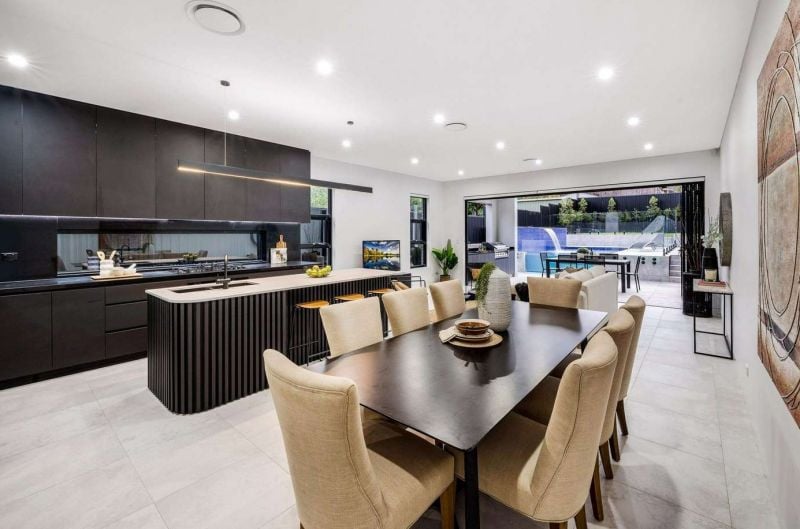 The gourmet chef's kitchen has high-end stone benchtops, premium Ilve appliances, integrated fridge and freezer, plus there is a formal lounge room, fully equipped home cinema, and downstairs lounge that overlooks the pool area. The upper level is home to four generous bedrooms, including two master suites that come with a walk-in robe, ensuite and balcony. Additional features include smart home automation, zoned ducted air-conditioning, intercom entry, security shutters and remote-controlled blinds, plus an auto double lock-up garage with storage space.