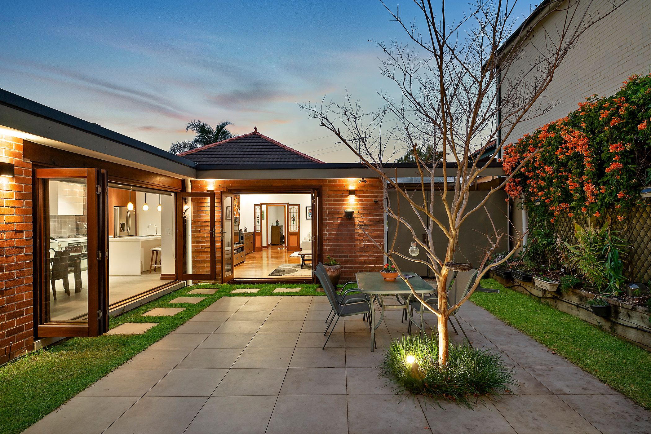 Double brick entertainer on single level block with Granny Flat