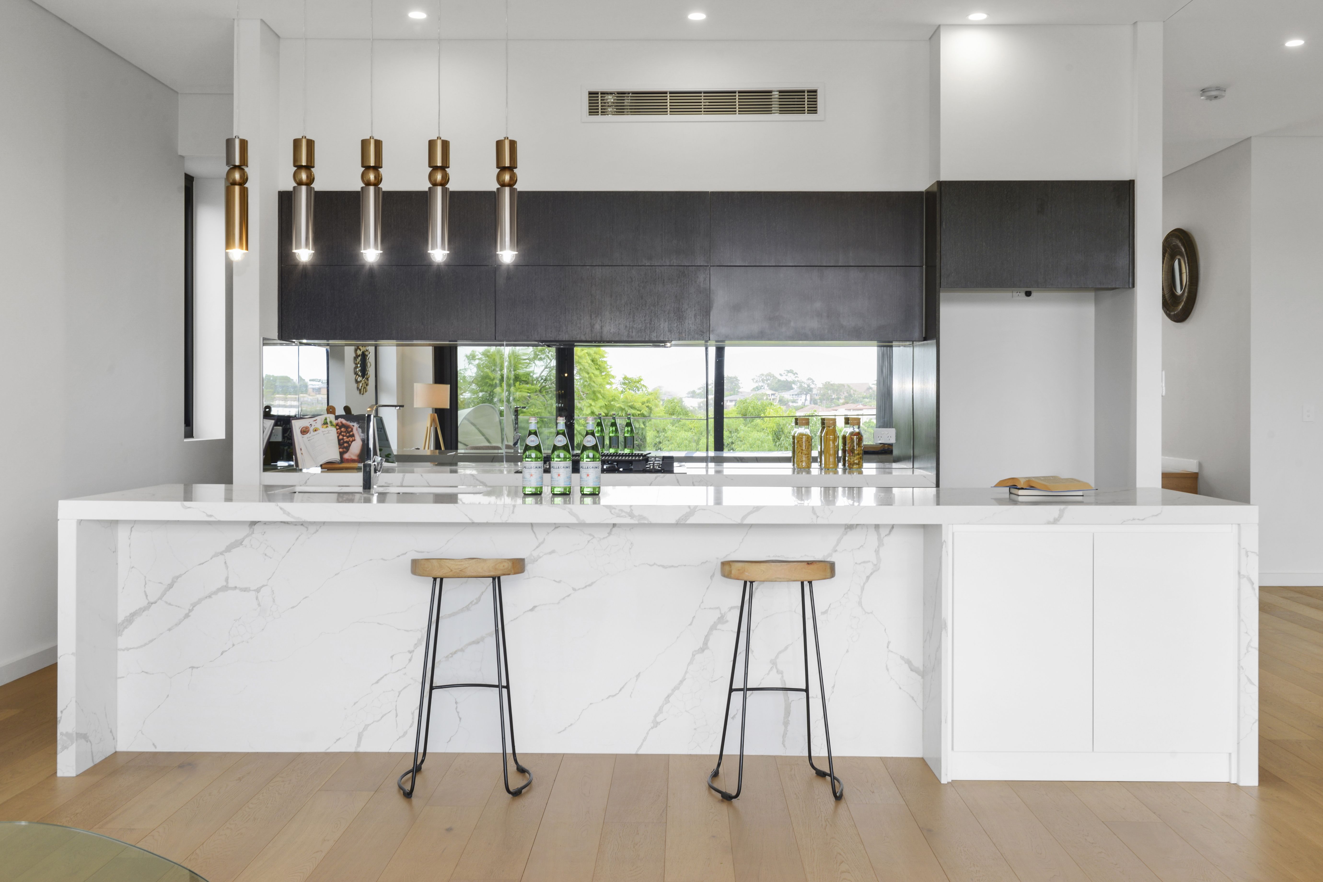 Oversized showpiece fully equipped kitchen with quality stone benchtops, steam oven, built in microwave and dishwasher, also with an adjoining full size butler's kitchen and pantry.