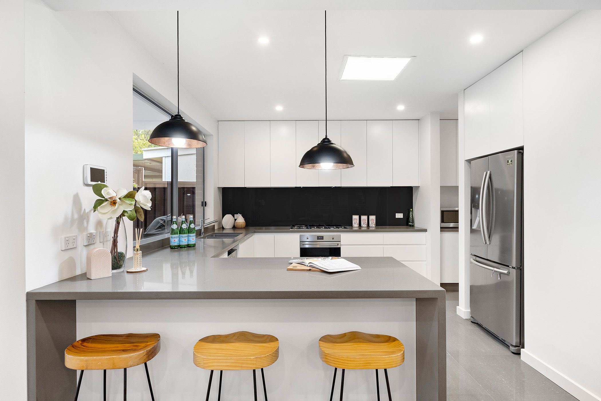 - Spectacular gourmet kitchen with butler's pantry, stone bench, stainless steel Smeg appliances and a breakfast servery