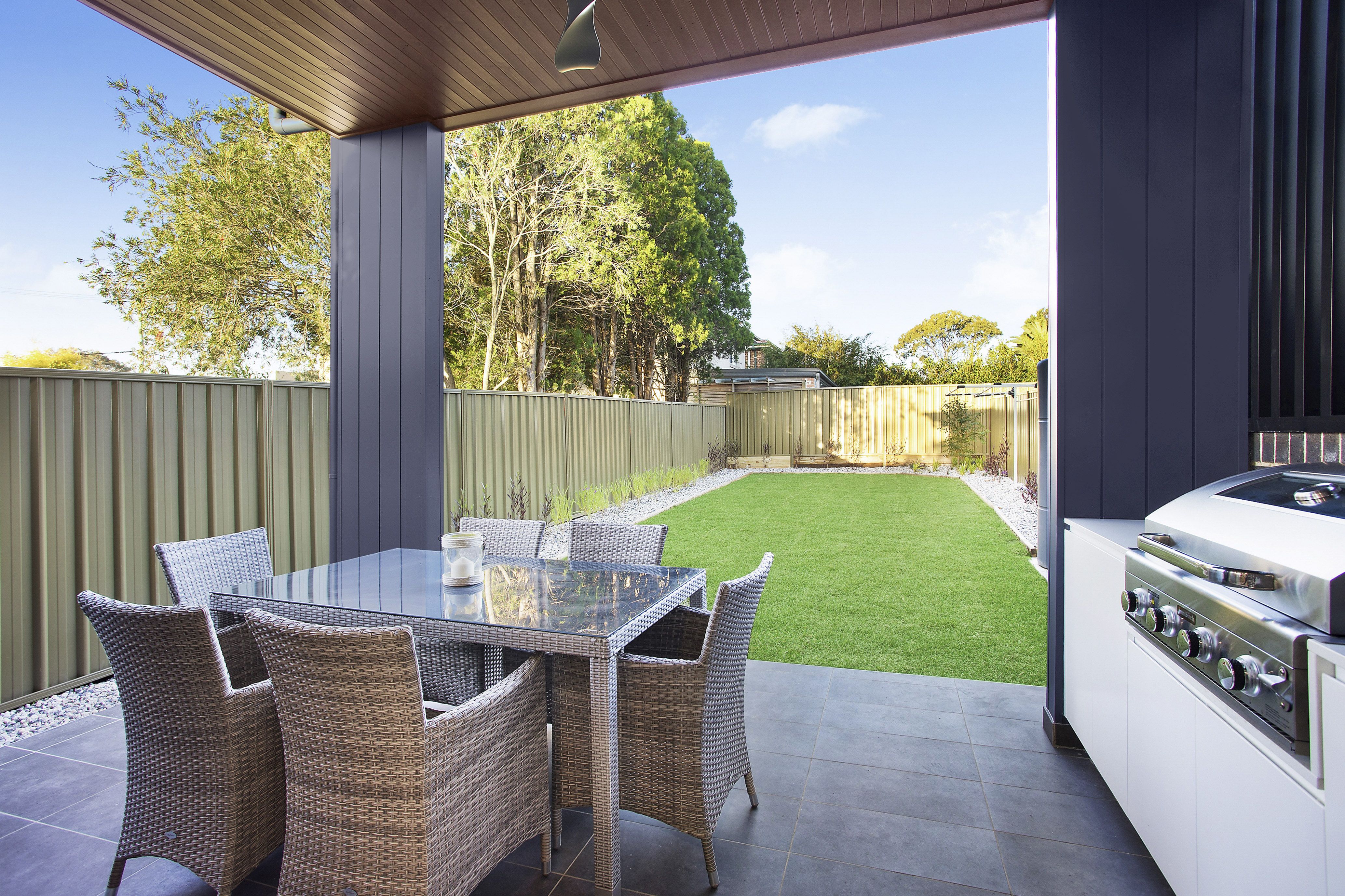 - Undercover alfresco entertaining with outdoor kitchen, with built-in BBQ