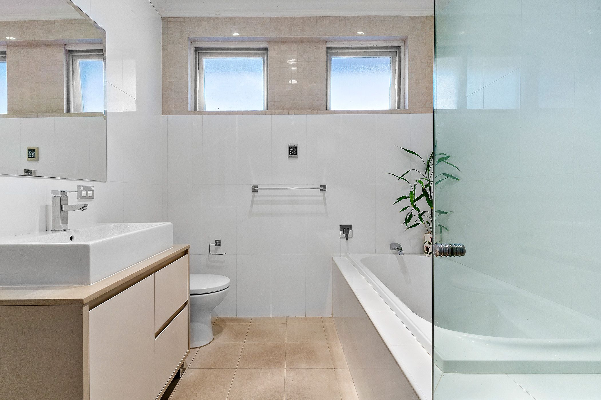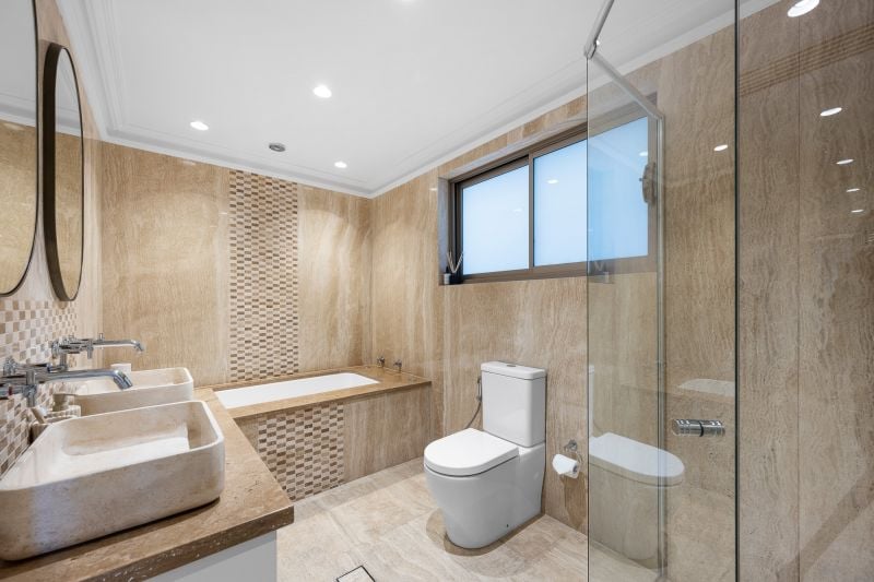 • Bathrooms with floor-to-ceiling tiles and designer finishes