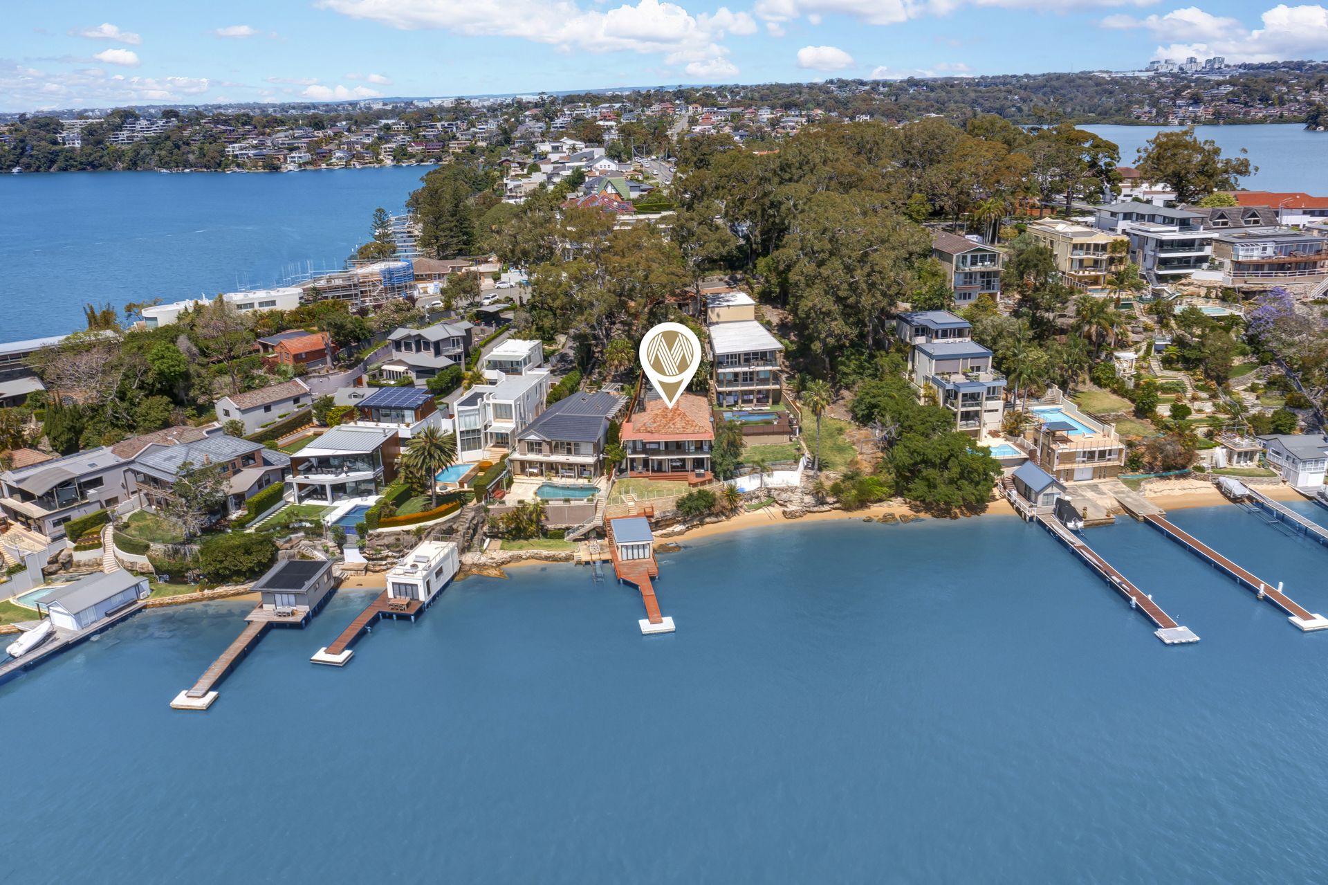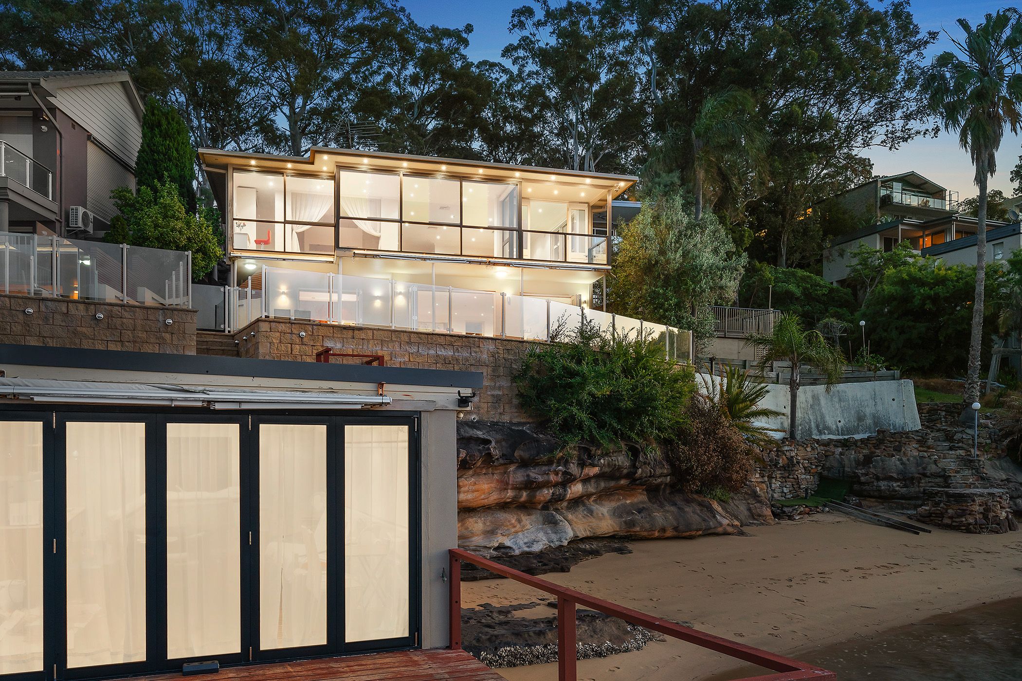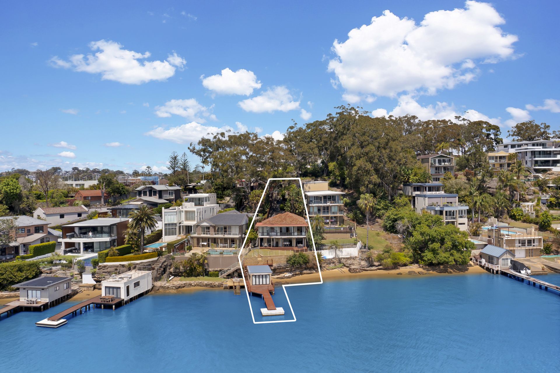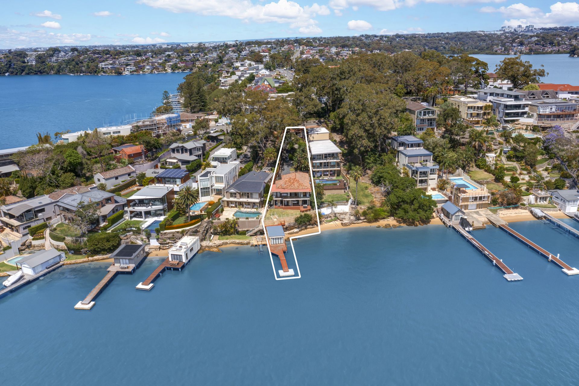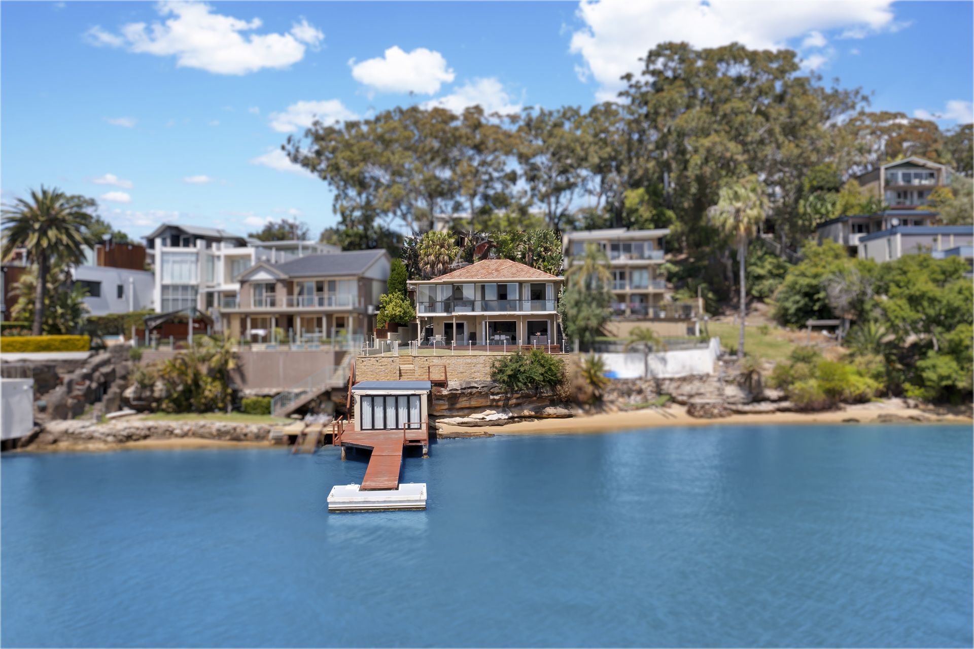 Spectacular rare north-facing street to deep waterfront with sandy beach