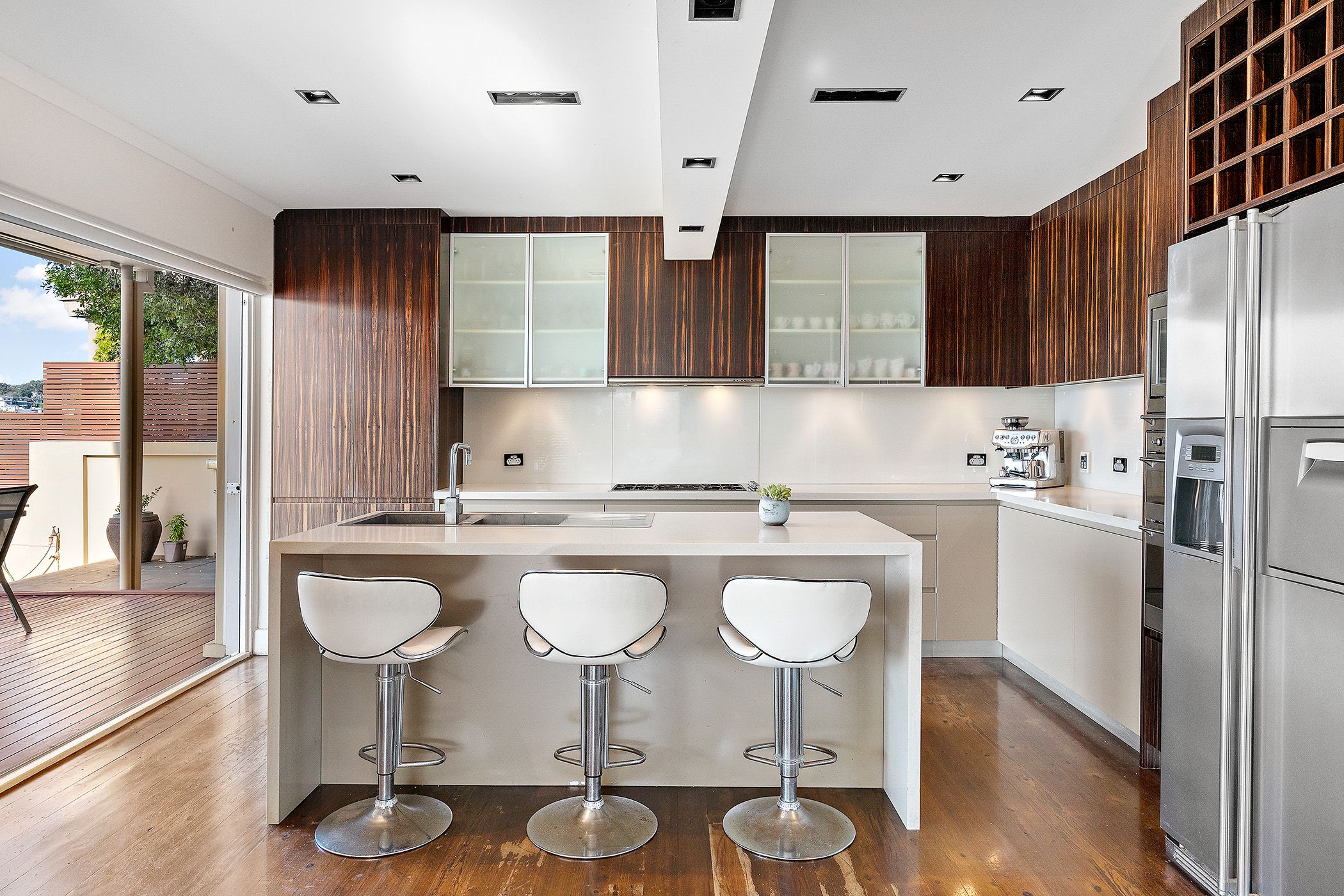 • Down stairs living area with, Caesar Stone and Smeg gas kitchen