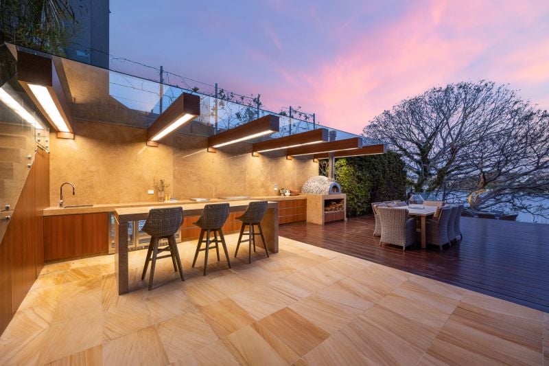 • Alfresco entertaining areas beside levelled lawn, outfacing luxury views