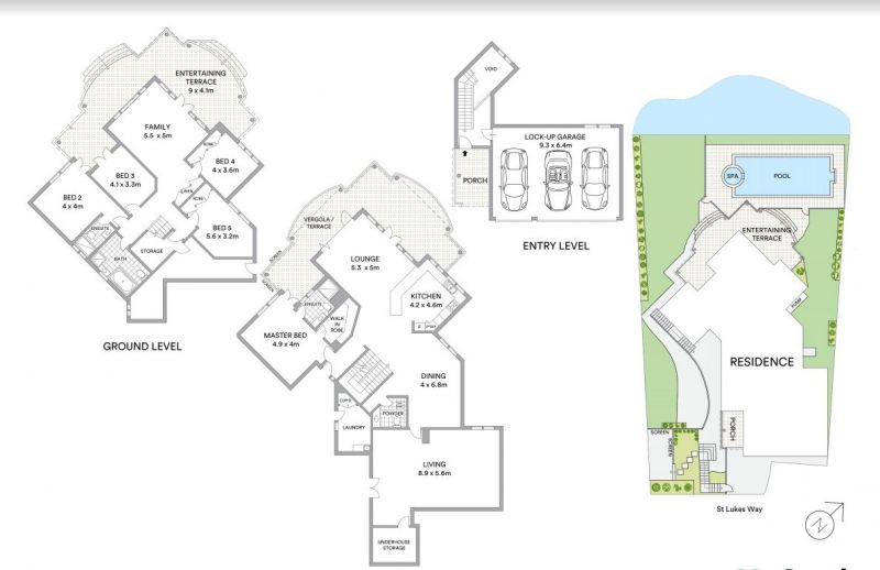- Generous three car garage and storage with internal access