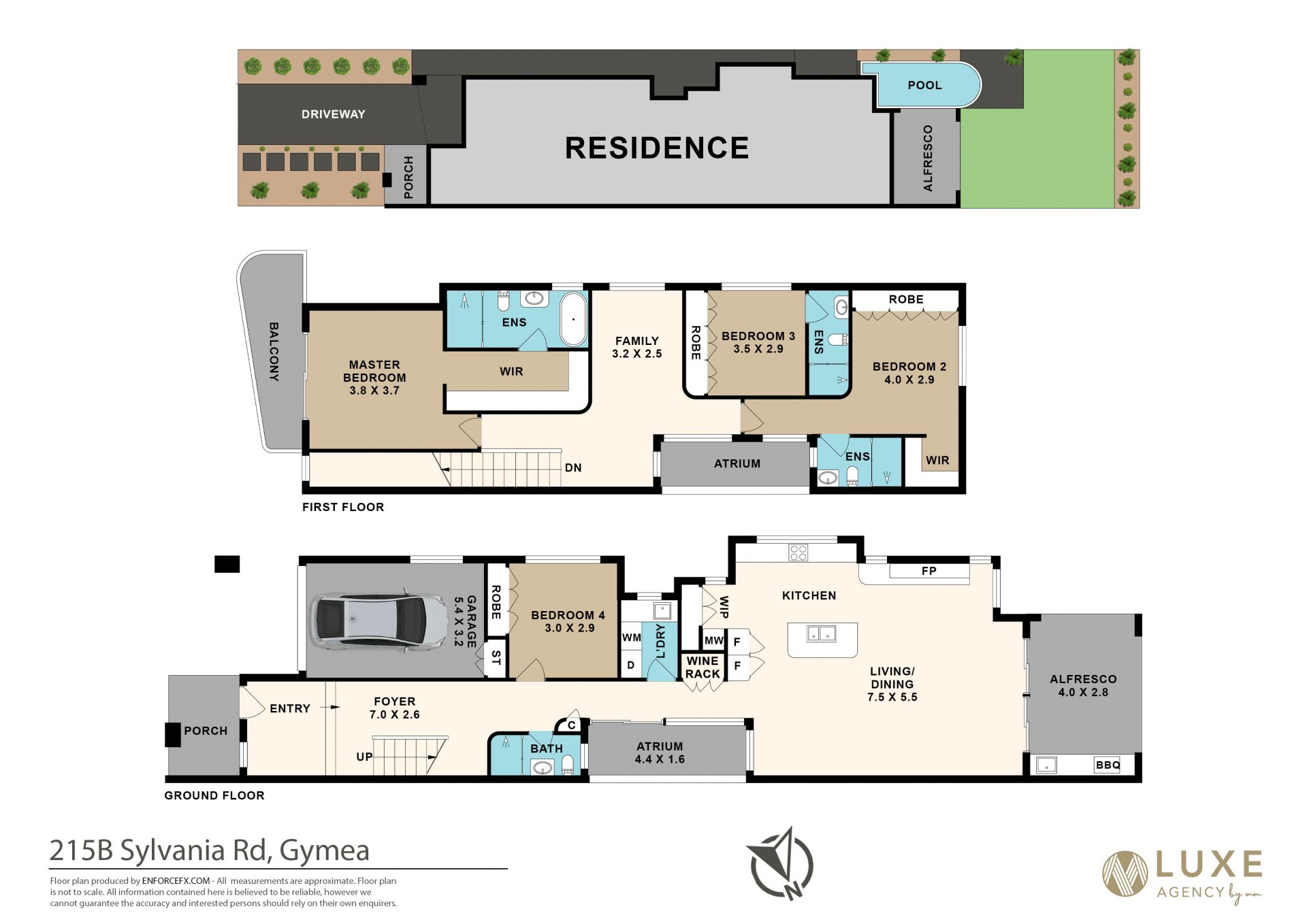 - Luxe Kitchen: Stone benchtops, gas cooker, integrated side-by-side fridge, and a walk-in pantry.