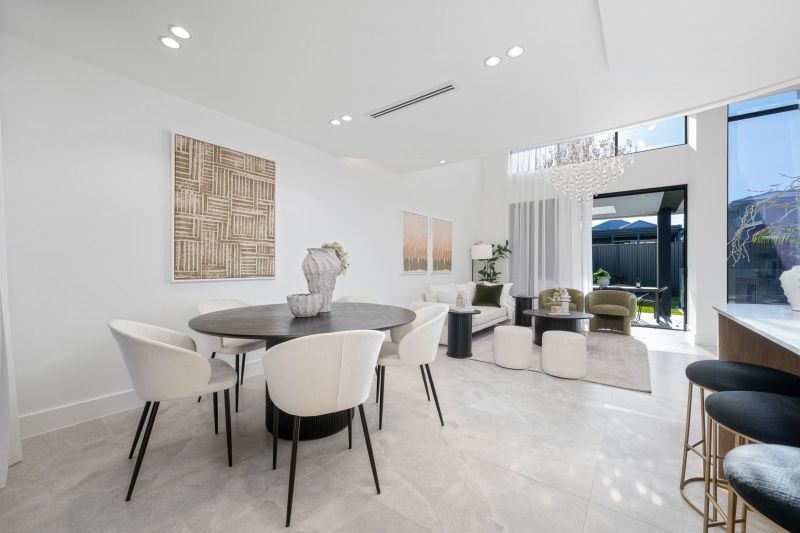 Designed for effortless entertaining, the outdoor space includes a covered entertainment area with a built-in BBQ, bar fridge, and sink, seamlessly connecting to the sparkling pool and lush grass yard. This home is equipped with state-of-the-art features, including solar power, individually zoned air conditioning in every room, and premium finishes throughout.