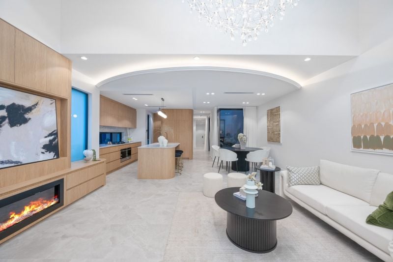 - Elegant Interiors: High ceilings, custom cabinetry, and a breathtaking crystal chandelier.