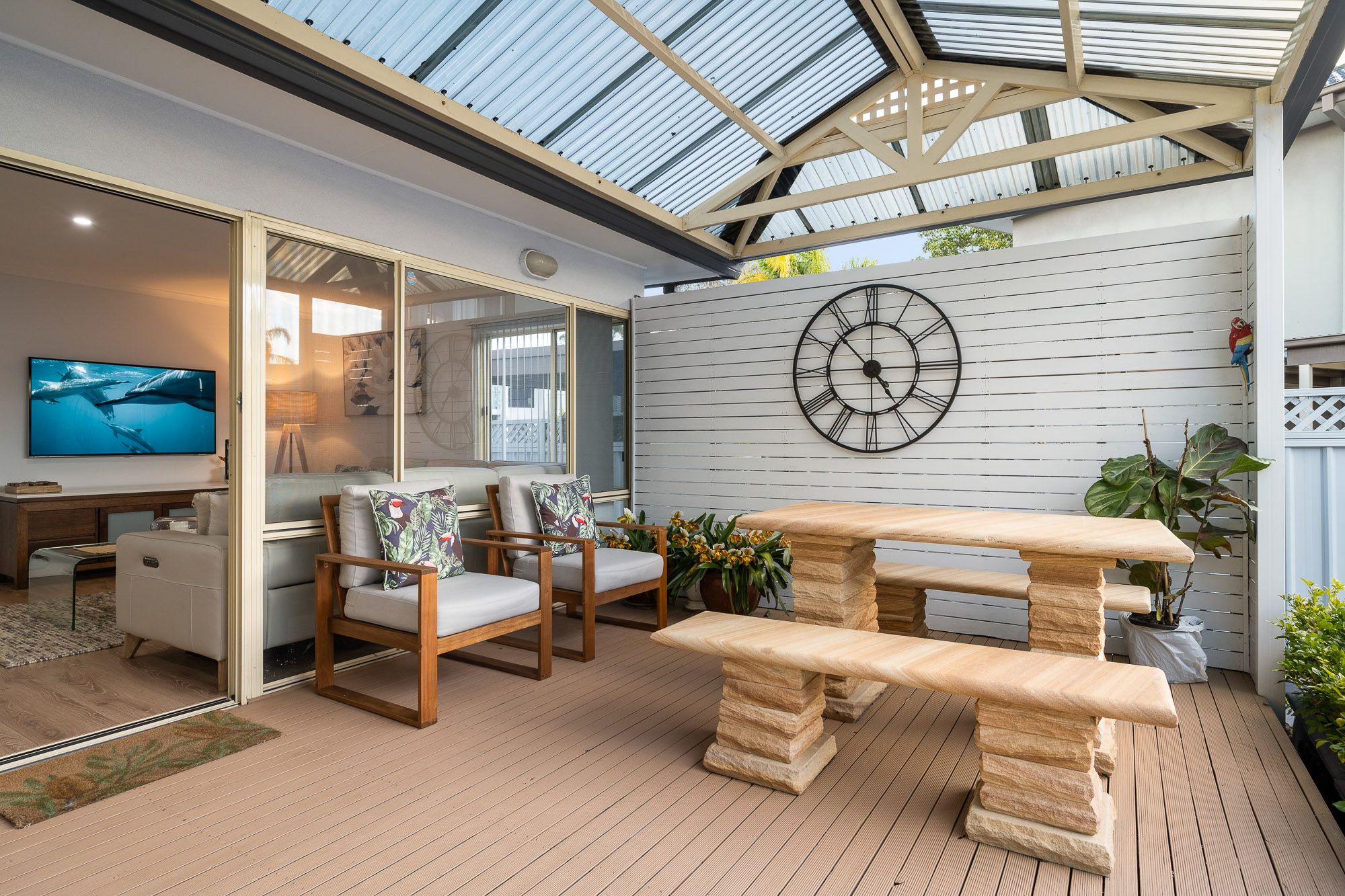 Outside is an expansive and peaceful backyard oasis with a deep level lawn and two private courtyards. Families will also enjoy the covered dining patio and alfresco deck that's ideal for hosting barbeques, as well as a double lock-up garage with internal access.