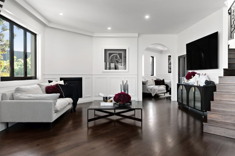 - Spacious combined living and dining area with beautifully maintained hardwood floors and large windows that fill the space with natural light.