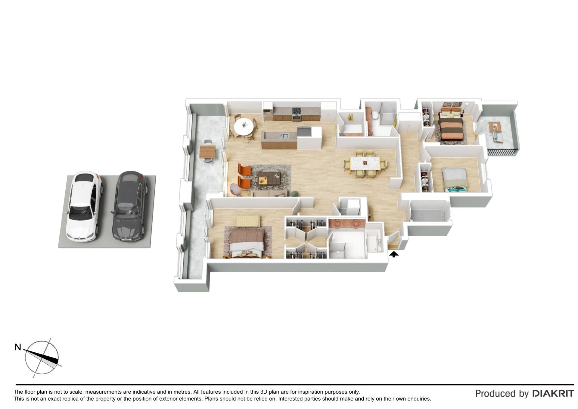 - Three bedrooms include a king-sized master with walk-in robe and ensuite